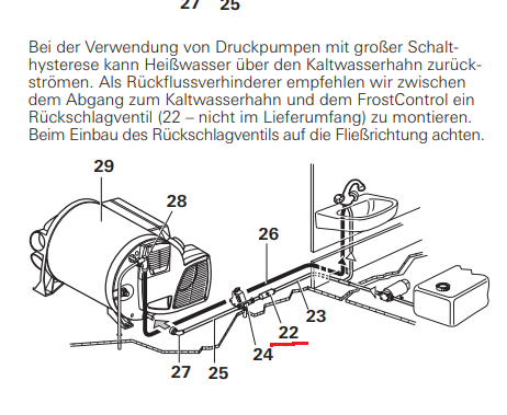 Hier ein Auszug aus der Truma Einbauanleitung , Rückschlagventil (22)