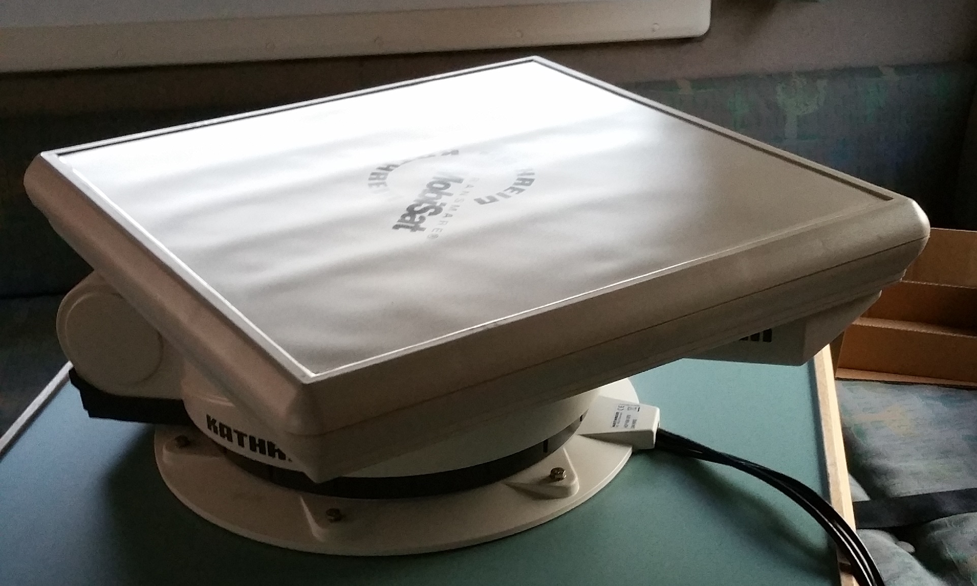 Das ist die getestete Dreheinheit mit Antenne, diese steht (für das Foto) im Wohnmobil auf dem Tisch.