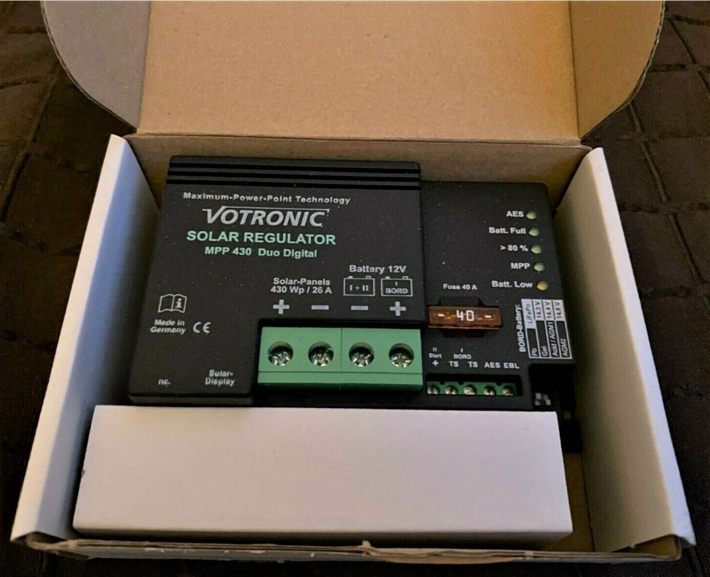 Im Ahorn Canada AD haben wir einen VCC 12-70 Booster und einen MPP 430 Regler von Votronic verbaut.