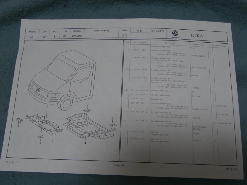 Hinten die Platte für Fahrz. mit Diesel Motor Teile Nr. 2D0 805 684 D