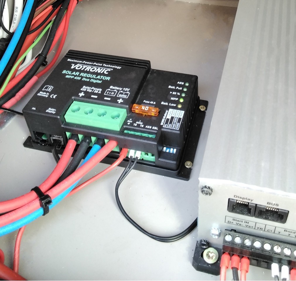 Das Jupiter Anzeige Panel und der Solar Regler MPP430 sind auch schon eingebaut, wenn auch noch nicht komplett verkabelt.