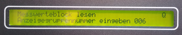 Dann 08 eingeben und mit der Q Taste quittieren, um Messwerte Block lesen auszuwählen.