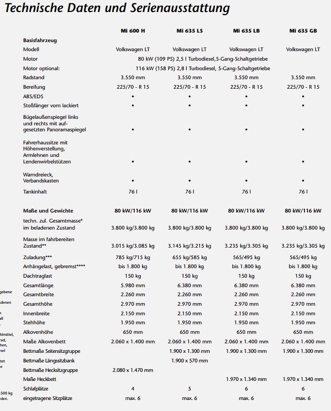 Karmann hat ja auch die längeren Missouri mit 3,8t verkauft.