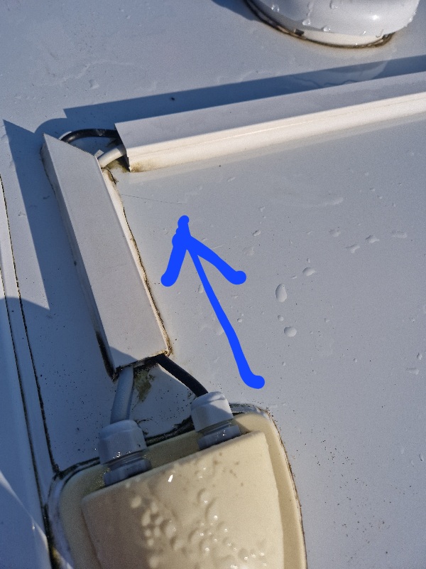 Ich habe forest CAPTAIN TOLLEYS CRACK REPAIR auf den dachriss aufgetragen und ihn zusätzlich mit SIKAFLEX abgedeckt.