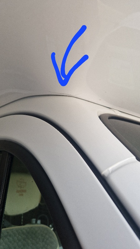 Das ist der riss auf der beifahrerseite über dem fahrerhaus.