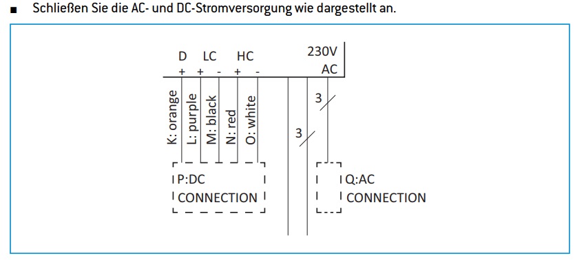 und 12 Volt LC (Low Current) für die Steuerung & Innenbeleuchtung, wenn beim öffnen der Türe das Licht innen nicht angeht ist diese ausgefallen.